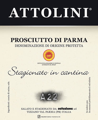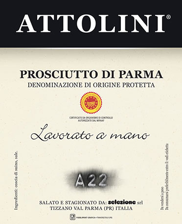 This excellent Parma ham DOP, totally respectful of all production regulations, is called A22, the tracking number that Parma ham Consortium gave the factory. This simple code underlines the simplicity of the ingredients employed for the production: best quality Italian pork legs, salt and…nothing else.